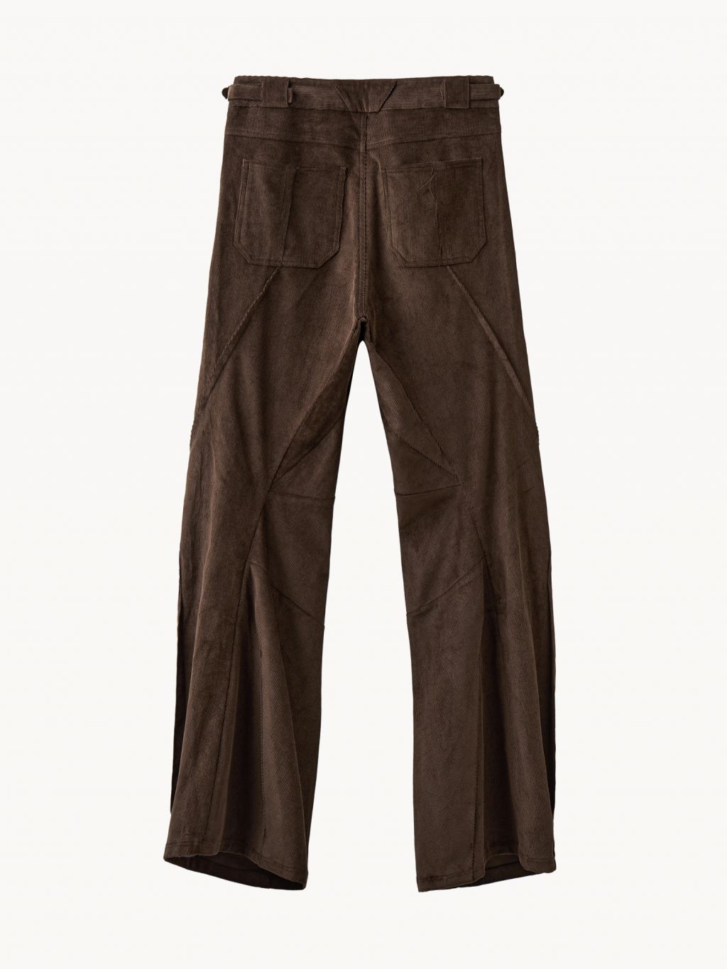 Engineered cut pants in Japanese 14W cotton corduroy with twisted seams, tonal topstitching and darts to form a structural silhouette.