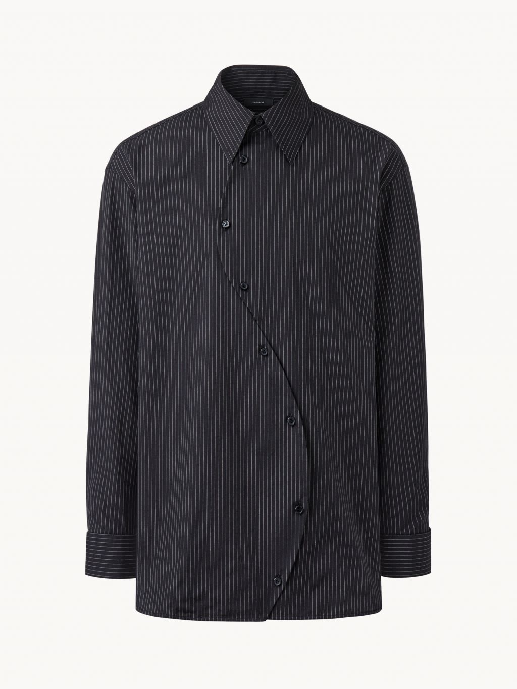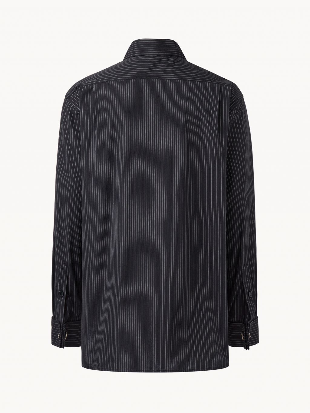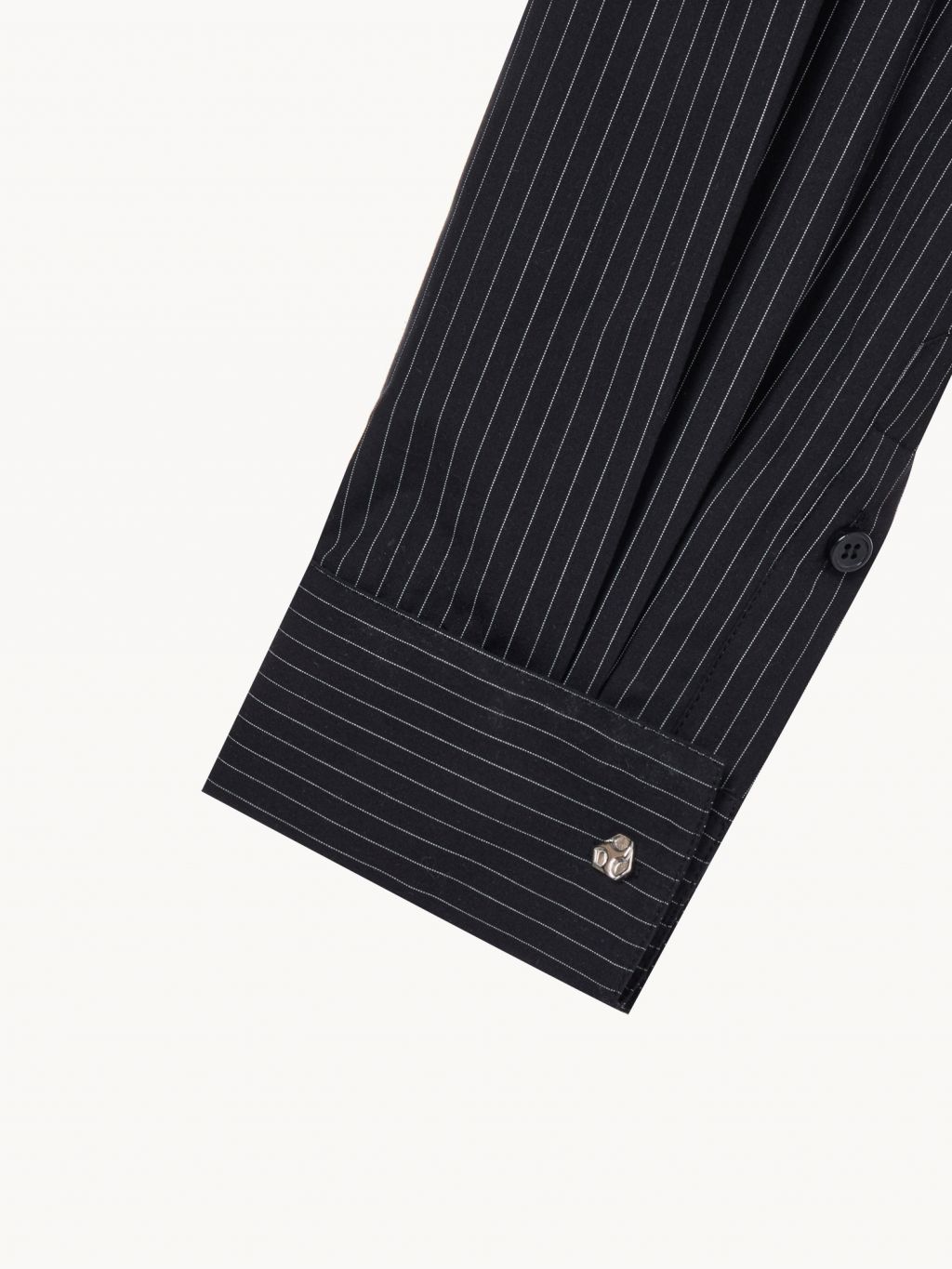 Classic button-up shirt crafted from lightweight Japanese striped cotton. An S-curved front closure shapes the shirt, paired with French cuffs and subtle back pleats that allow ease of movement. Finished with our signature cuff-link. |