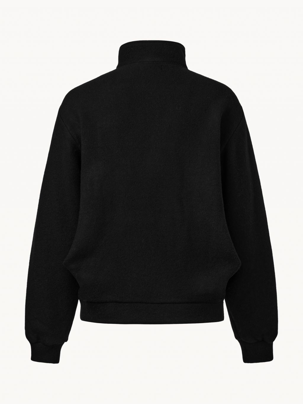 Crafted from Super 140s wool fleece with a cashmere-like softness and texture. Exceptionally smooth and warm to the touch, the fabric's gentle warmth reflects the quality of its raw materials. This comes from a unique knit structure where connecting yarns form precise equilateral triangles, unlike conventional knitting. The design remains minimal with elegant pattern cutting. The natural drape on the back embodies this refined approach. |